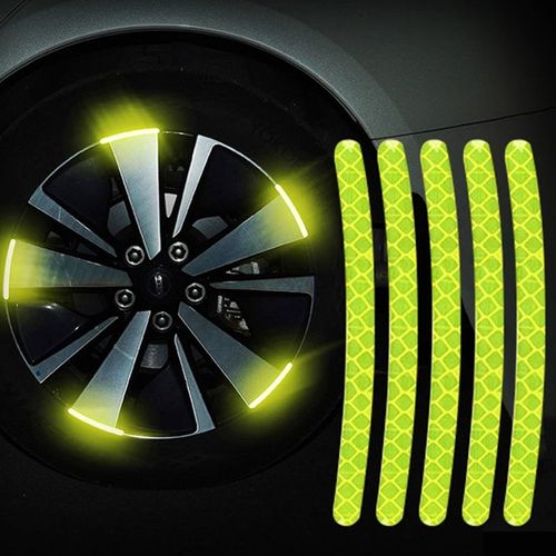 Reflective Wheel Hub Stickers, Universal Night Safety Warning Decals for Cars, Bikes, Motorcycles & Electric Vehicles, Tire Rim Decorative Strip (Fluorescent Green)